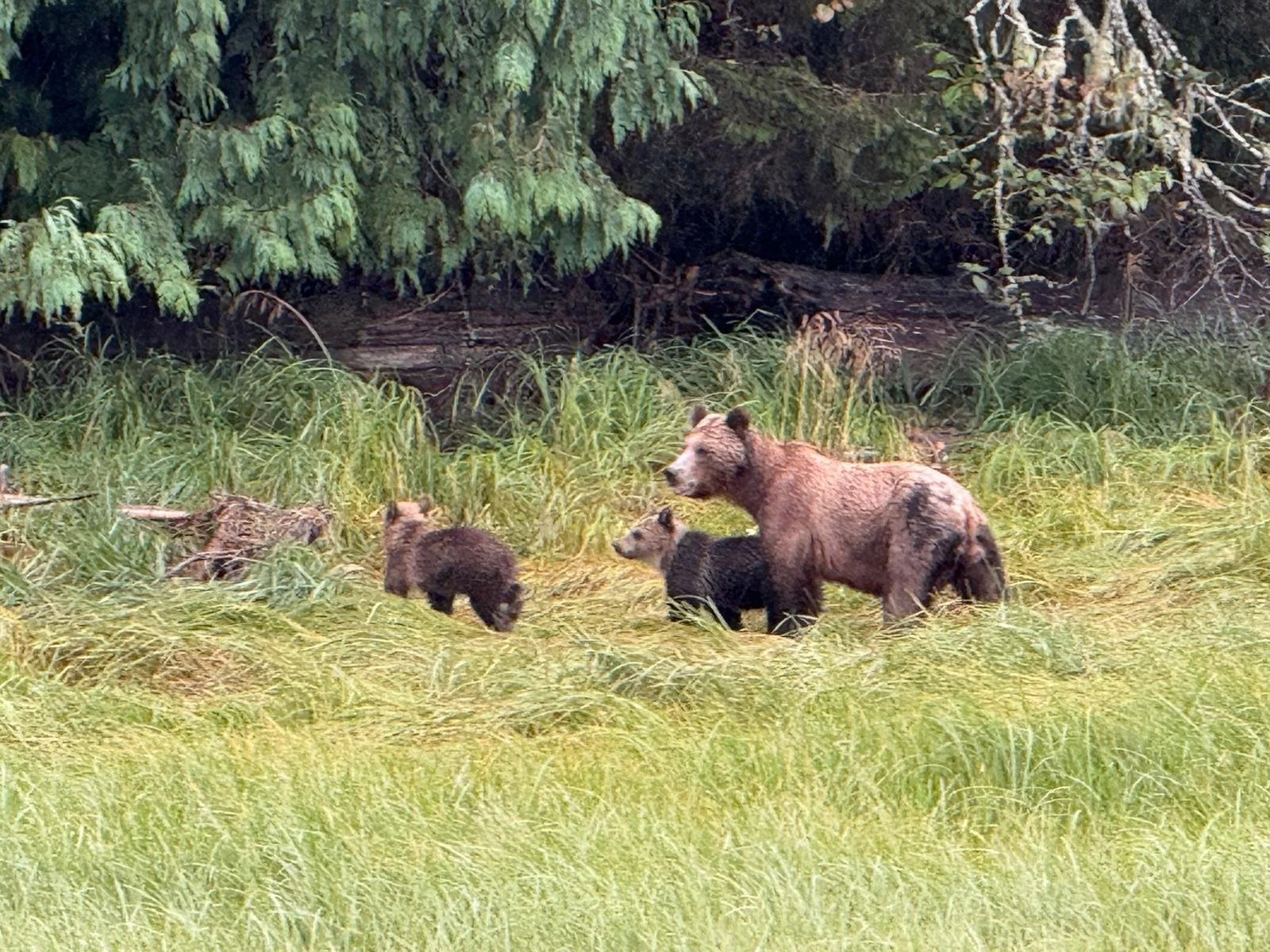 Mother and two cubs: grizzy bears in Canada’s Great Bear Rainforest